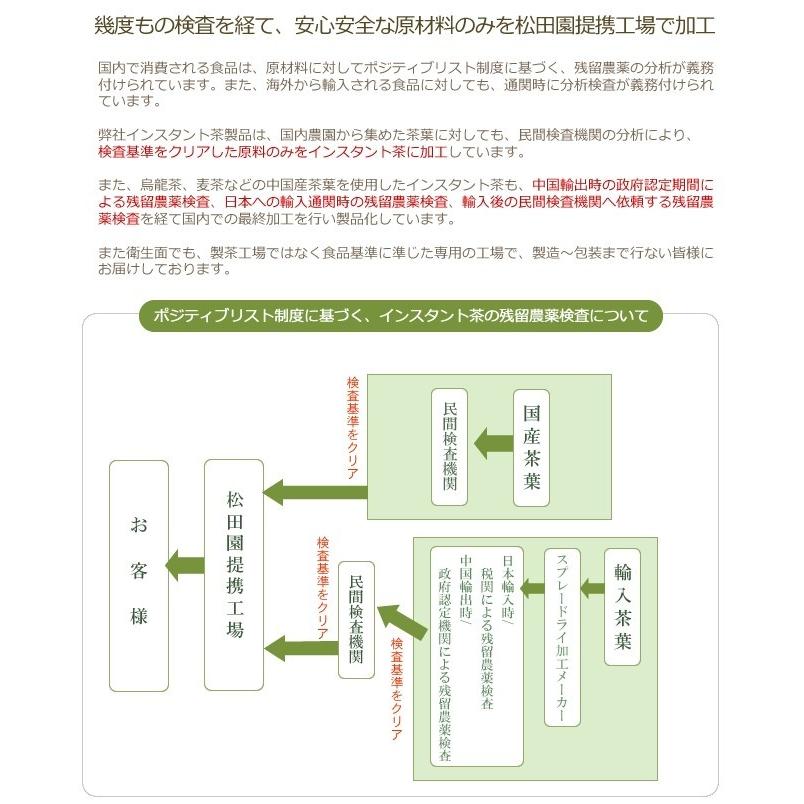 【安心・安全】徹底した商品流通管理で、中国・税関・国内自主検査にての3度の残留農薬検査済・また国内で菌検査済の茶原料を使用しております。
