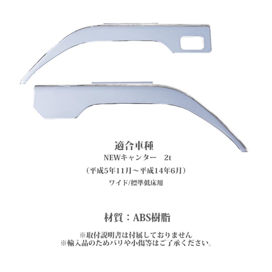 【商品説明】NEWキャンター メッキ フェンダー 左右セットです。 【仕様(スペック)】材 質:ABS樹脂 クロームメッキ取付方法:交換タイプ 【適合車種】NEWキャンター 2t(平成5年11月〜平成14年6月 ) ワイド/標準低床用 ※説明書は付属しません。※輸入品の為小傷や汚れ、バリ等がある場合がございます。■送料 【本州/四国/九州:無料】【北海道:600円】【沖縄:1540円】【※離島:別途見積もり】