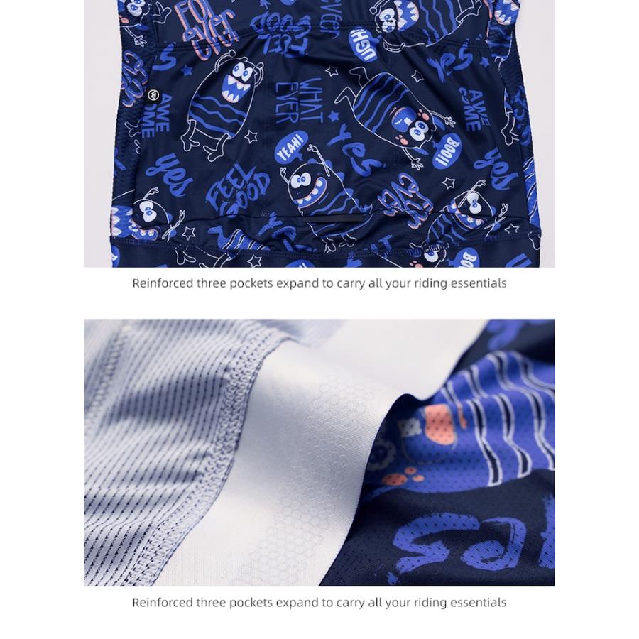 笑顔が似合うキュートなデザイン。涼しい軽量の半袖サイクリングジャージです。