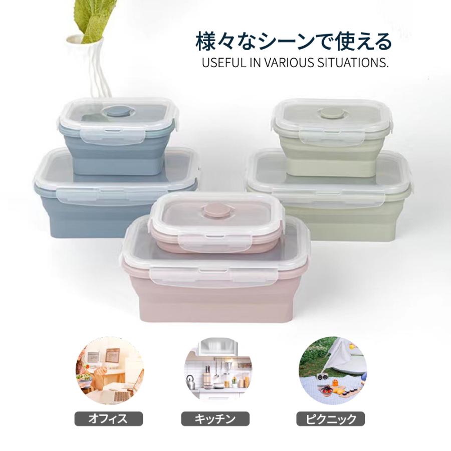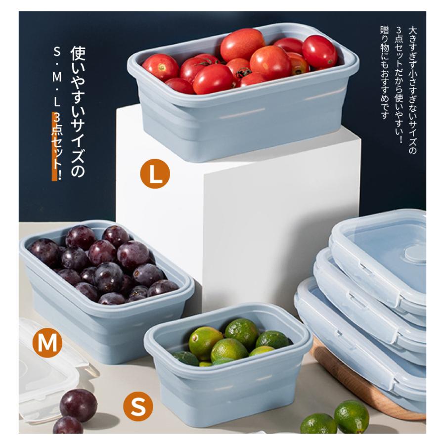 カラフルでかわいいのに、折りたたみができて持ち運びも便利なフードコンテナ(S,M,L)3個セットです。