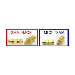 変換コネクター SMA→MCXアンテナ同軸用SMA型コネクターをMCX型コネクターに変換します。MCX型コネクターはスナップオン/プルオフ結合の小型コネクターで、省スペースの取付け設計が可能です。変換コネクター MCX→SMAアンテナ同軸用MCX型コネクターをSMA型コネクターに変換します。SMA型コネクターはマイクロウェーブ帯域で安定した伝送特性を持つネジ固定式の小型同軸コネクターです。