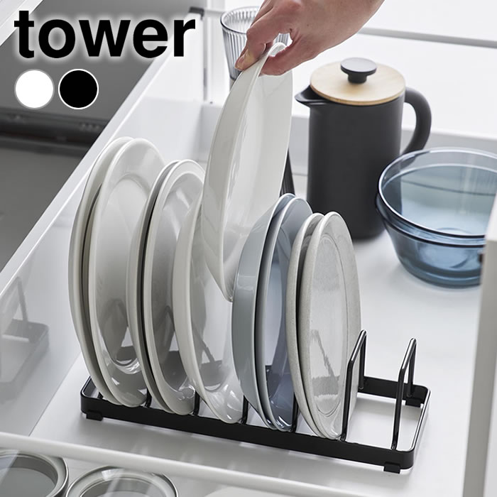 お皿スタンド タワー 山崎実業 tower ホワイト ブラック 1375 1376 ディッシュラック ディッシュスタンド 食器スタンド 公式 yamazaki タワーシリーズ[MM1]