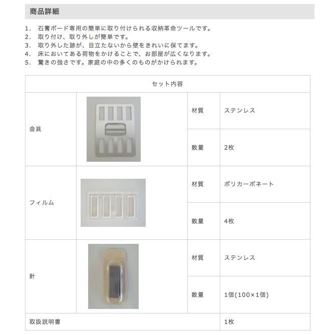 【素材】フックはステンレス製(ホワイト 白仕上げ) 針はステンレス製 フィルムはポリカーボネイト製
