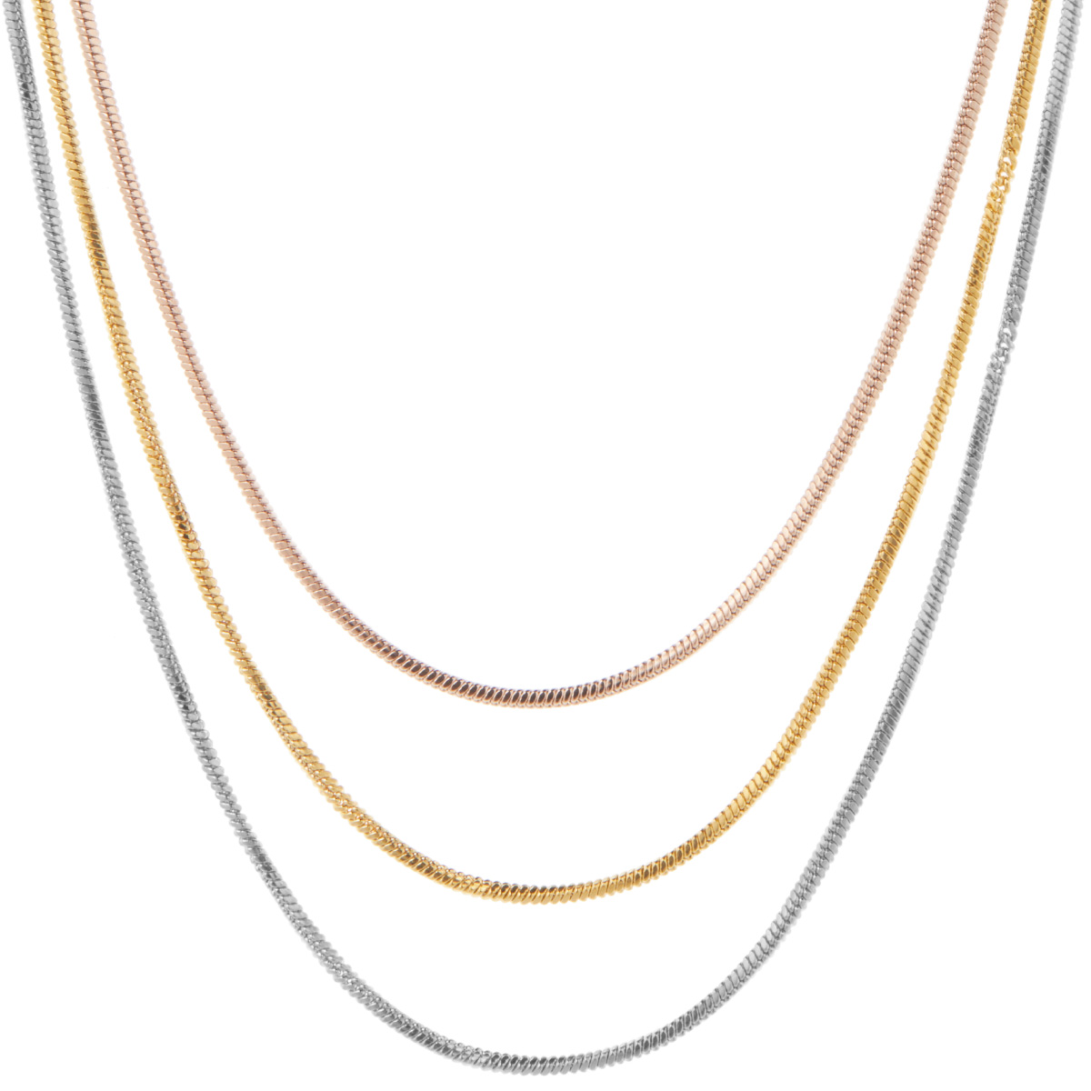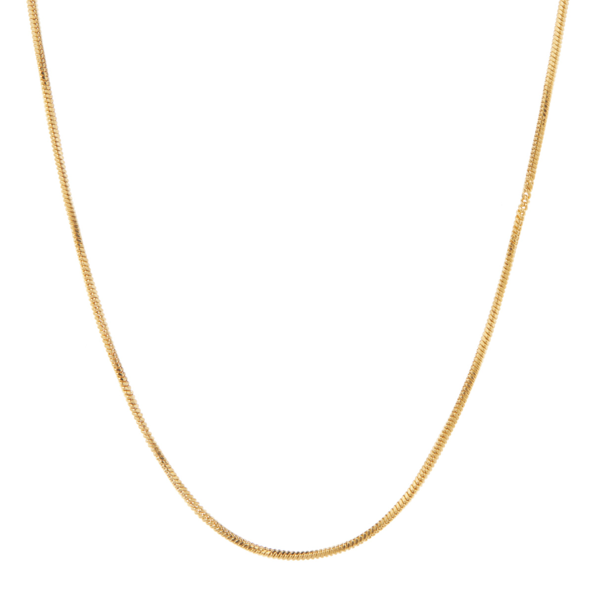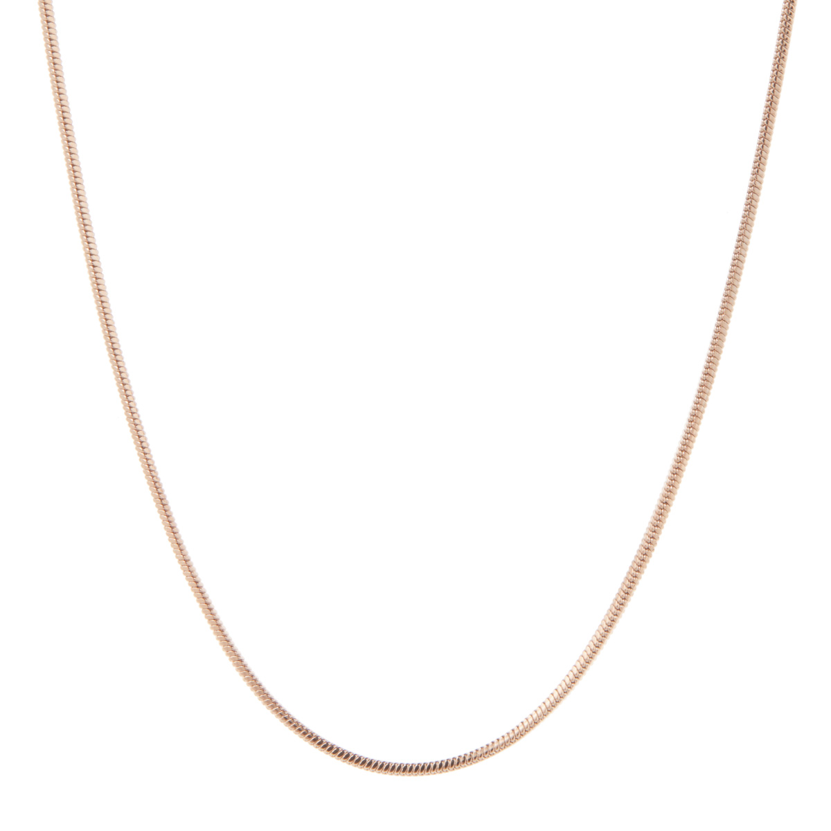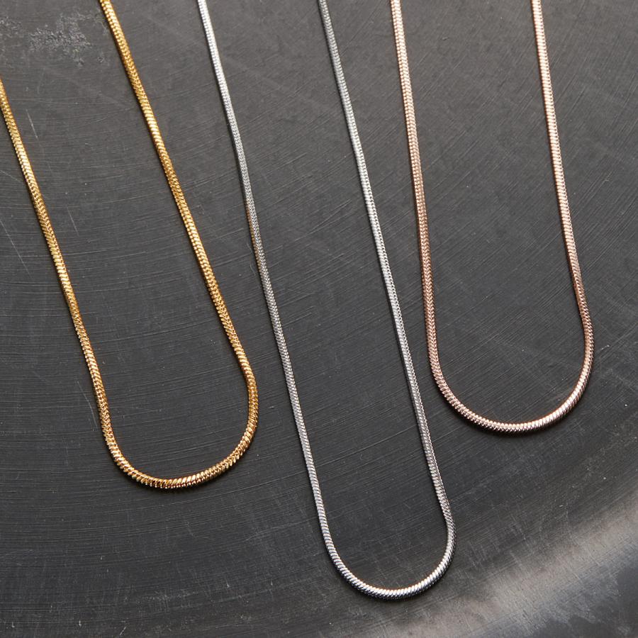 繊細でさりげない存在感を与えるスネークチェーンのネックレス。