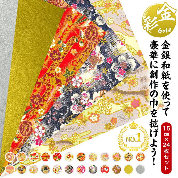 1000円ポッキリ 送料無料【楽天1位】友禅和紙 手漉き 友禅 和紙 金銀和紙 金彩Gold 15cm 24枚入 友禅千代紙 和紙 伝統柄 創作 千代紙 友禅 折り紙 おりがみ 文房具 小物 ブックカバー 御朱印 ピアス