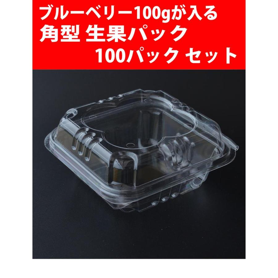 約100gのブルーベリーの生果が入る角型のパックです。