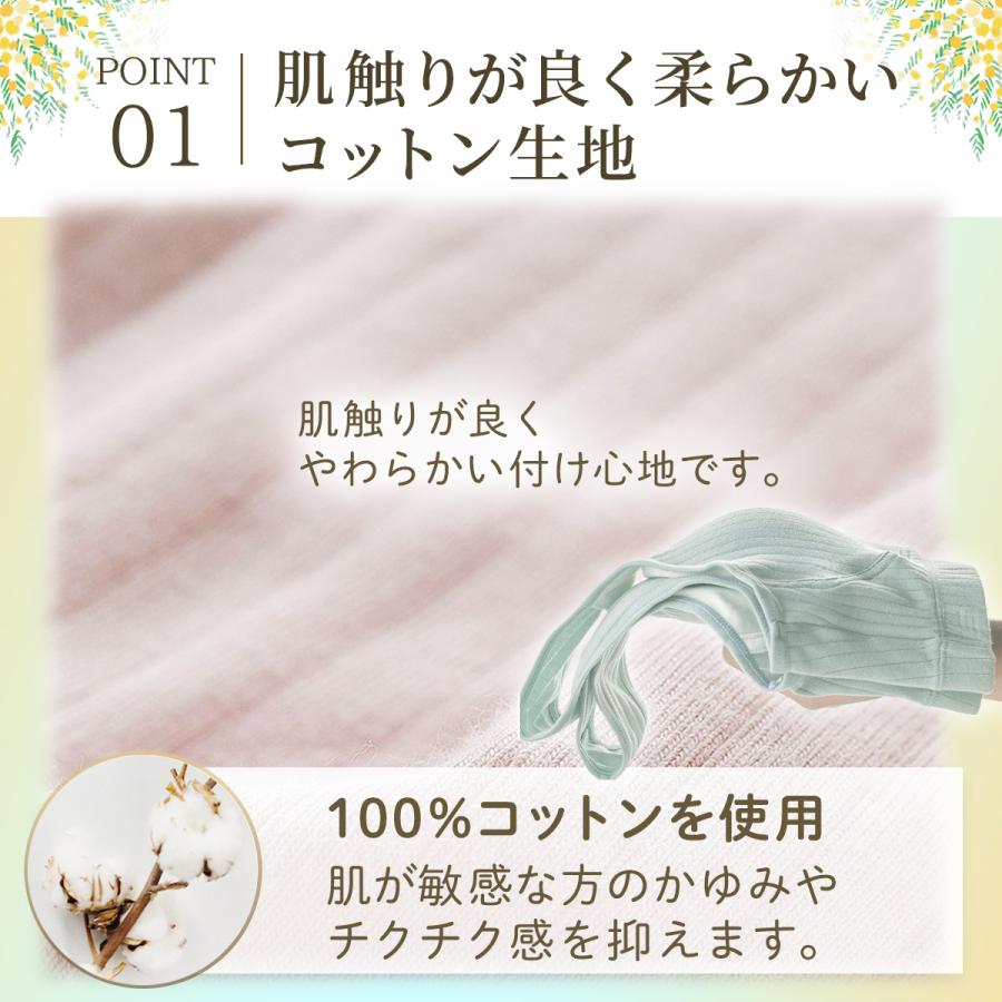 Point1 100%コットンを使用。肌が敏感な方のかゆみやチクチク感を抑えます。