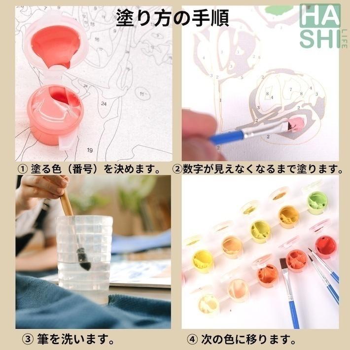 付属のアクリル絵具で数字のとおりに色を塗るだけ。