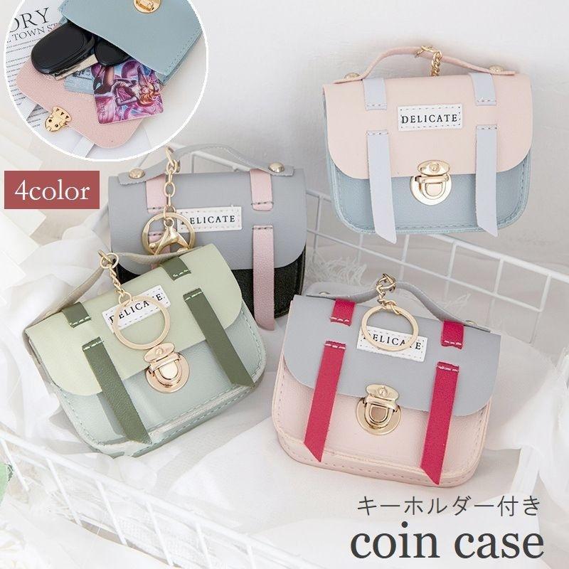 小銭やカード、鍵などを収納するのにぴったりなキーホルダー付きコインケース。淡い色合いとバッグ型のデザインがキュート♪【サイズについて】画像をご参照ください。【素材について】PU【カラーについて】生産ロットにより柄の出方や色の濃淡が異なる場合がございます。お使いのモニターや撮影時の光の加減などにより画像と実際の商品のカラーが異なる場合もございます。予告なしにカラーやデザインなどの変更がある場合もございます。