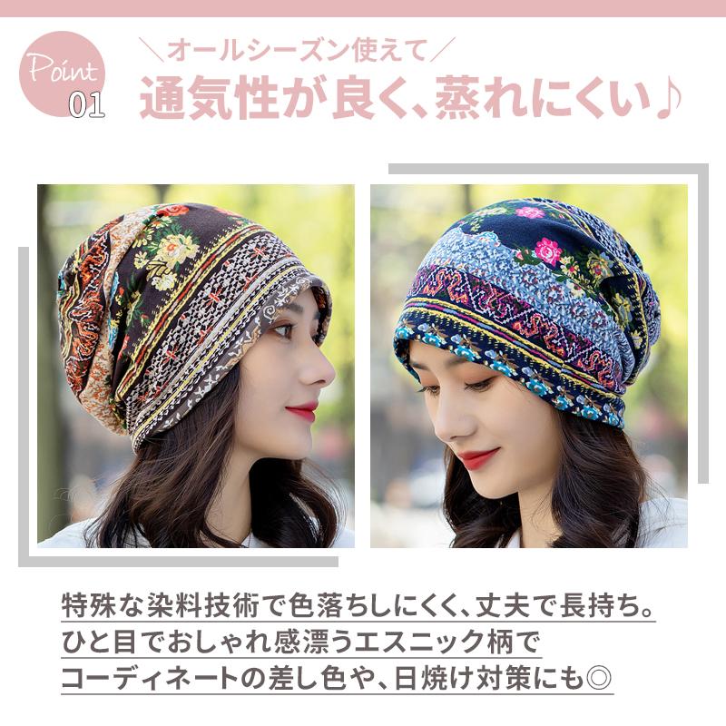 ニット帽 レディース サマーニット帽 医療用帽子 サマーニットキャップ 女性用 帽子 薄手 春秋 花柄 ビーニー ターバン ニットキャップ