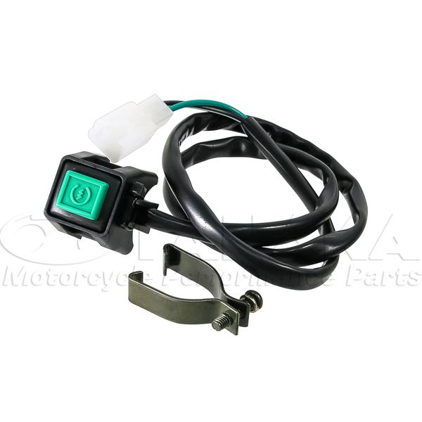 プッシュタイプ スタータースイッチ TYPE-Bセルスイッチのない車両の増設タイプのスイッチとなります。クランプ付ですので、ハンドルバーなどに装着してお使いいただけます。【適合】汎用