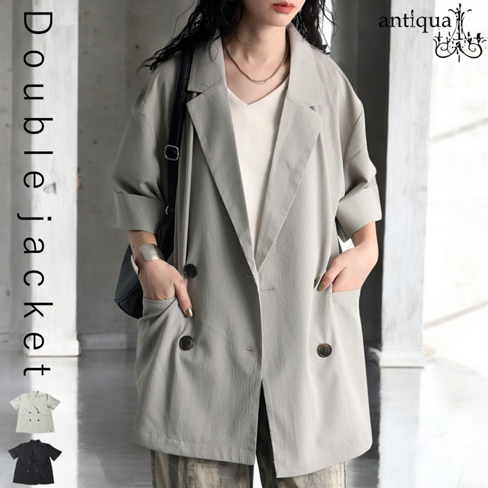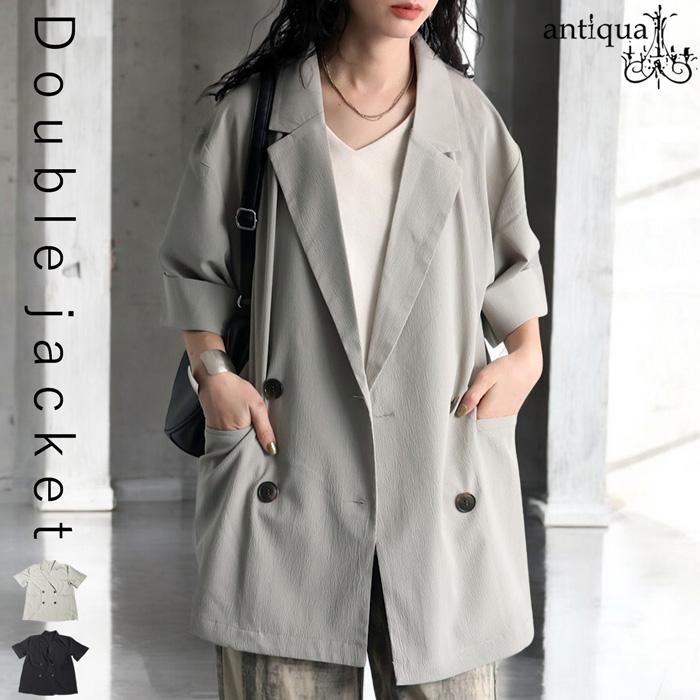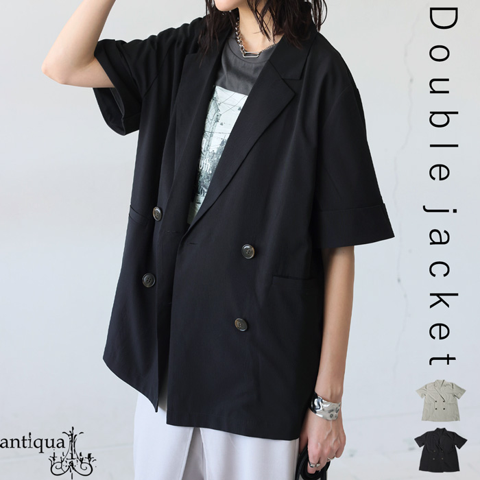【検索ワード】ダブル半袖ジャケット ジャケット レディース アウター ダブルジャケット 半袖 Vネック 前開き ボタン クレープ生地 ダブル 高級感 透け 軽やか 通気性 涼感 羽織り バックスリット ダーツ ダブルボタン テーラードカラー テーラード ゆったり シンプル きれいめ 上品 高級感 体型カバー 細見え 着痩せ 大きめ 大きいサイズ フォーマル 結婚式 二次会 パーティー オケージョン グレージュ グレー ベージュ ブラック 黒 antiqua アンティカ 大人 おしゃれ 10代 20代 30代 40代 50代 60代 春 夏 お洒落 カジュアル かわいい かっこいい あんてぃか