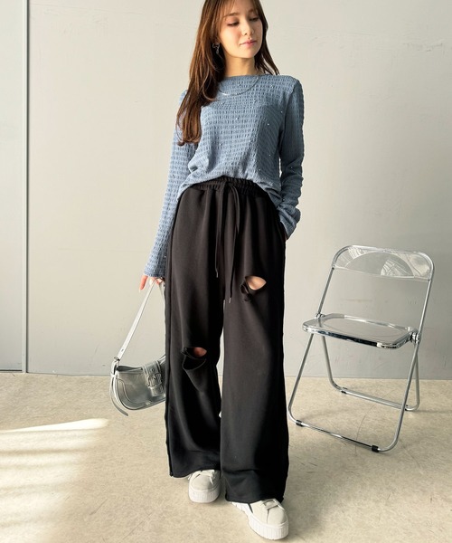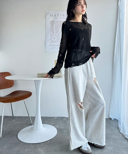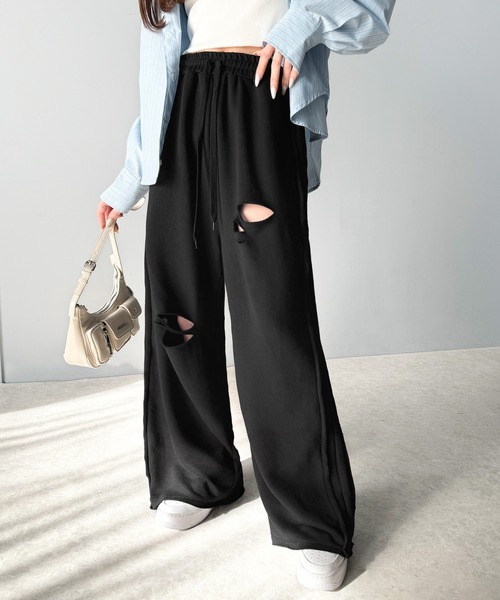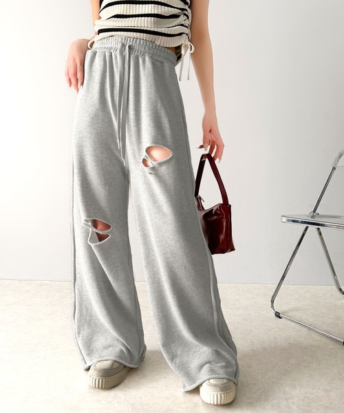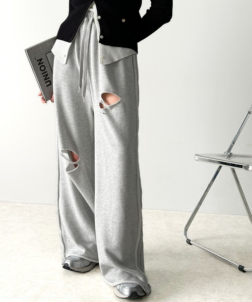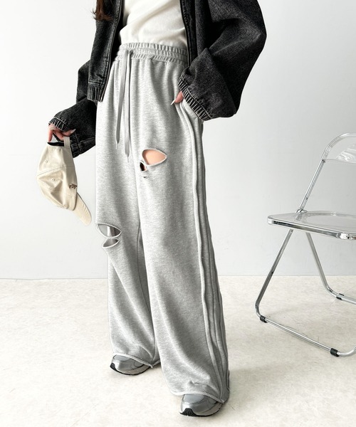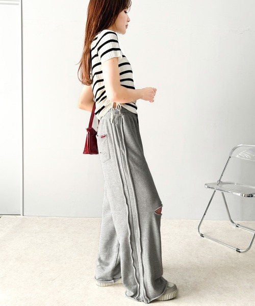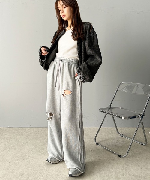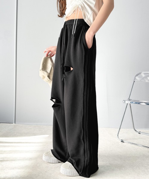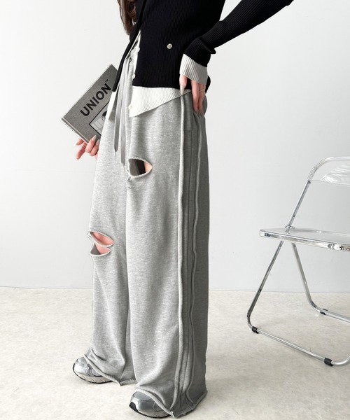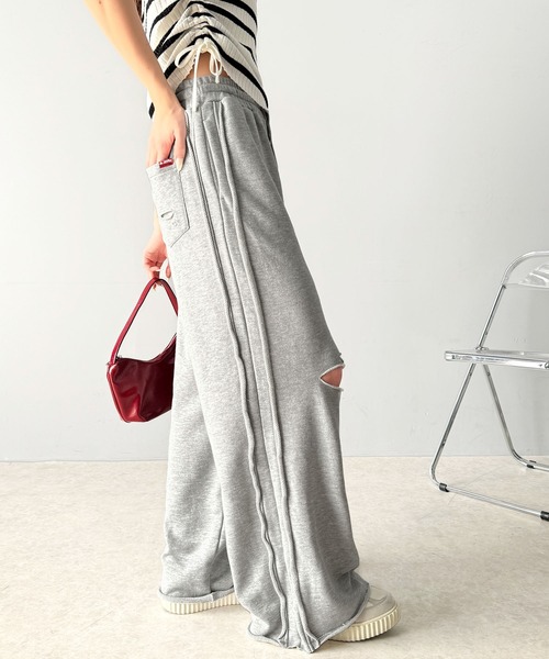 商品名:《Javaジャバコラボ》チェンジングサイドラインダメージ加工ワイドスウェットパンツ(裏毛)