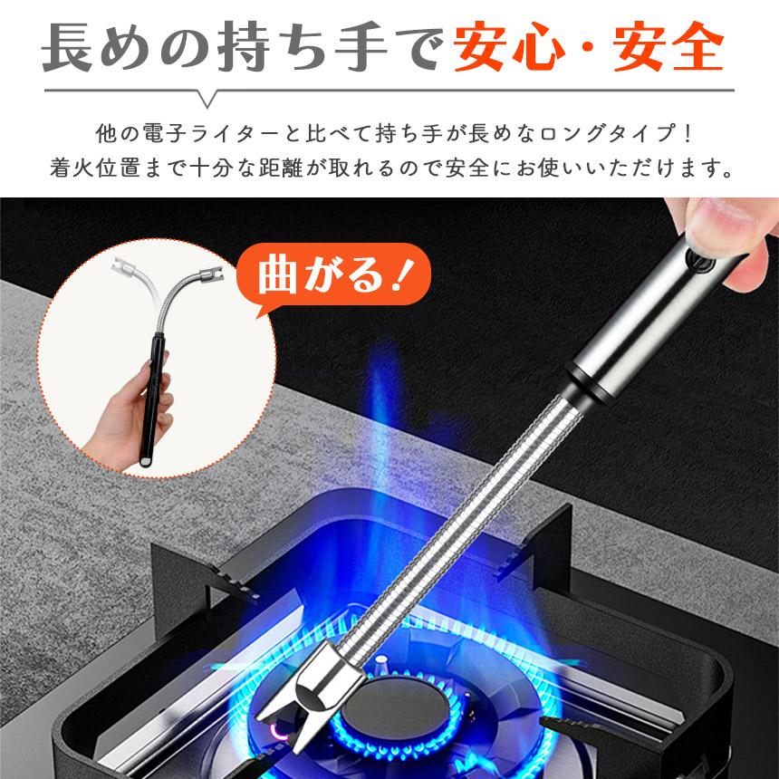 ●ガス・オイル交換不要!便利な電子ライター●電子ライターってご存じですか?ガス・オイルの交換不要・風に強い・安全なライターがあります。point【炎が上がらず安心・安全】電気で点火するため炎が上がらず、安全にご使用いただけます。点火する位置から十分な距離があるので火傷をしにくいのも◎