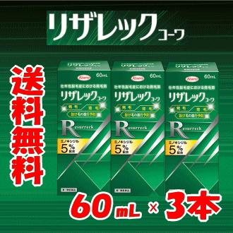 ポイント12倍 送料無料 3個セット【第1類医薬品】興和 コーワ リザレック コーワ 60ml×3本セット 壮年性脱毛症の育毛 発毛促進剤 ミノキシジル5%