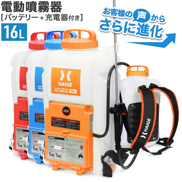 ★クーポン利用で7560円&P最大27倍★ハイガー 充電式電動噴霧器 16L 背負い式 バッテリー式 充電器付 コードレス ノズル6種付 HG-KBS16L 1年保証 熱中症対策 暑さ対策 熱中症