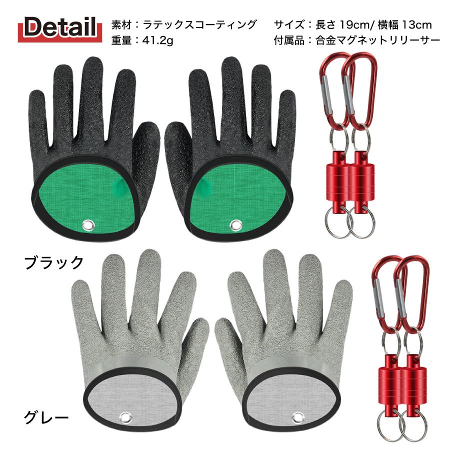 ・サイズ:フリーサイズ ・滑り止めを採用しており、濡れた状態や滑りやすい状況でも信頼性の高いグリップを提供します。・素手で魚を掴みたくない時、ニオイやヌメリをガードします・着脱しやすい・カラナビ、グローブにマグネットが付いています。