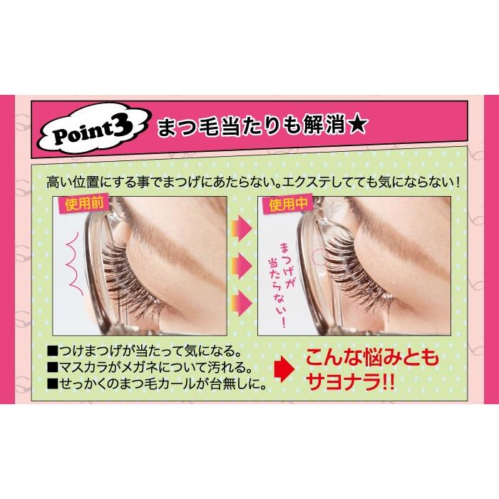 メガネのずれ防止だけでなく、つけまつげやまつ毛カール・エクステがメガネに当たる、マスカラが眼鏡について汚れるなどでお悩みの方にもオススメ。