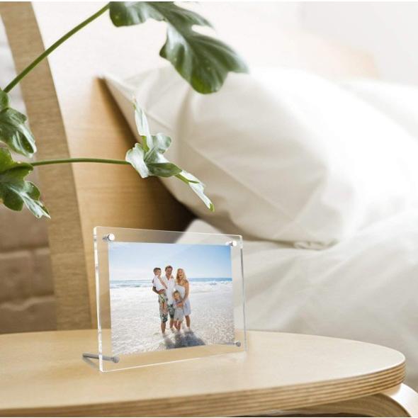 【組立簡単】:(1)二枚アクリル板で写真を挟む。