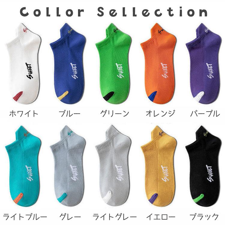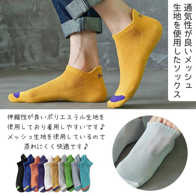 靴下 メンズ くるぶし メッシュ ソックス おしゃれ 10足セット くつ下 セット くつした くるぶしソックス ロゴ スニーカー ソックス ロゴ付き かっこいい ショートソックス ホワイト ブラック イエロー グリーン ブルー オレンジ パープル グレー