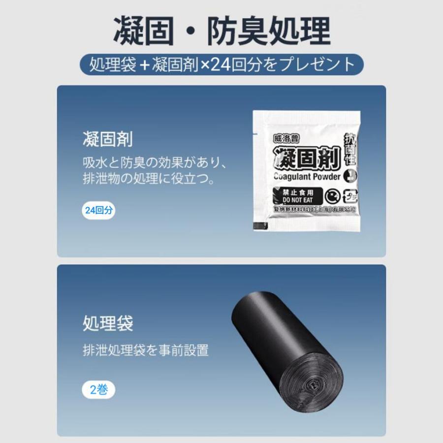 ・商品内容:トイレ本体(蓋つき)、収納袋、プレゼント(処理袋2巻 、凝固剤×24回)