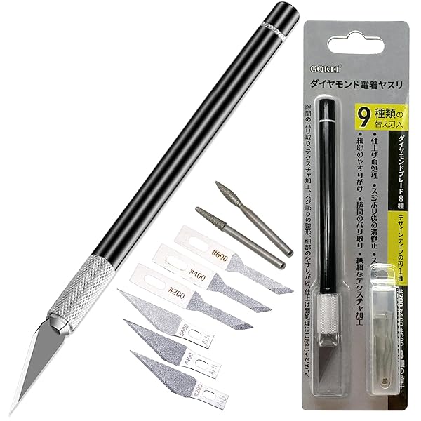 GOKEI ダイヤモンドヤスリ 精密ヤスリ 【9種類の替え刃入 超硬極薄ヤスリ 0.6mm】 ホビー用ヤスリ ダイヤモンド電着ヤスリ バリ取り やすり プラモデル 工具 シャープナー 硬い素材の研磨 研磨 金属 ソフビ 細い プラスチック 面取り 仕