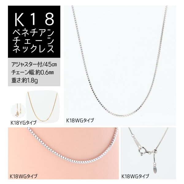 商品名K18YG/K18WG/K18PG ベネチアンチェーンネックレス