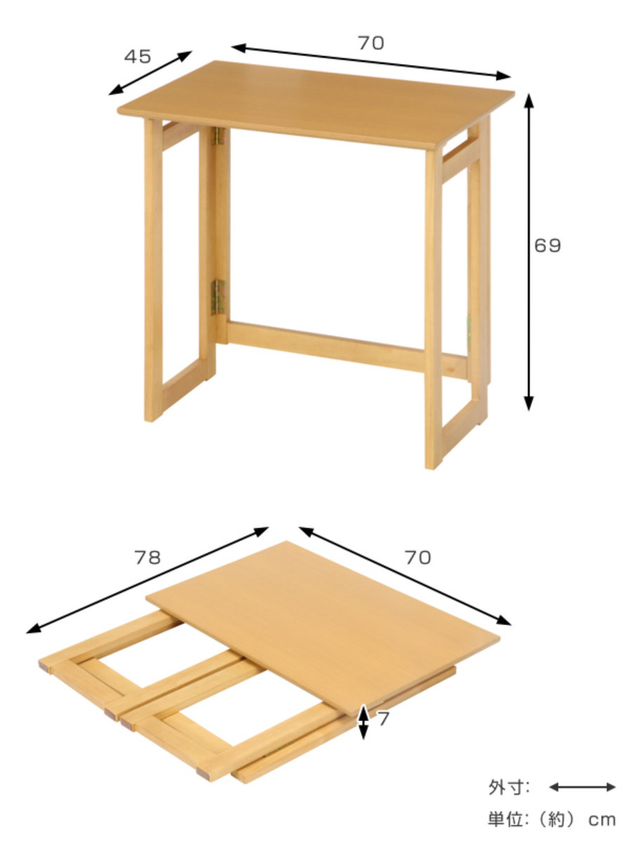 折りたたみ時:約幅70×奥行7×高さ78cm