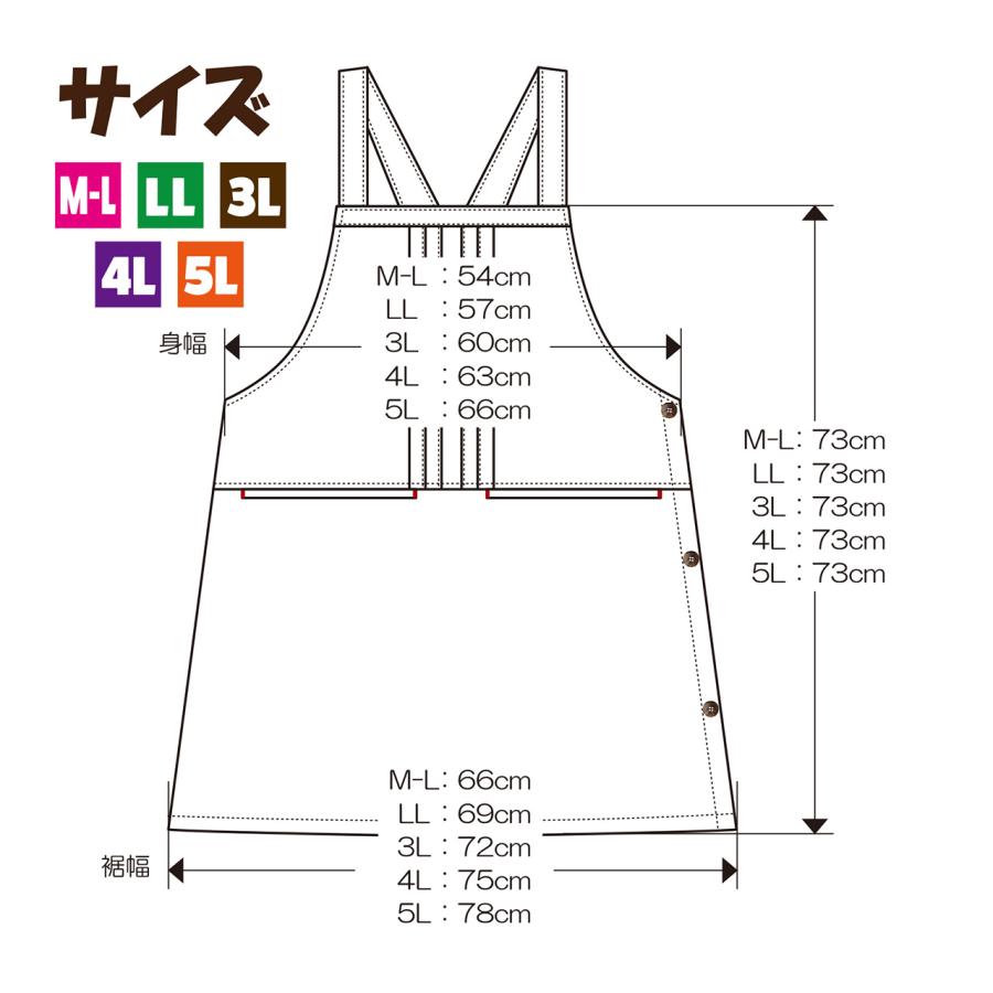 入荷しました【送料無料】選べるサイズ 無地サロペットエプロン M-L LL-3L 4L-5L 大きいサイズ ガーデニング シンプル カフェ サイドボタン 無地