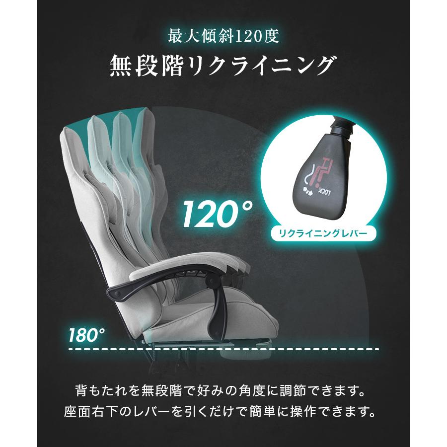 頭部と腰部をサポートするクッション付き、長時間座りっぱなしでも疲れにくいフィット感です。