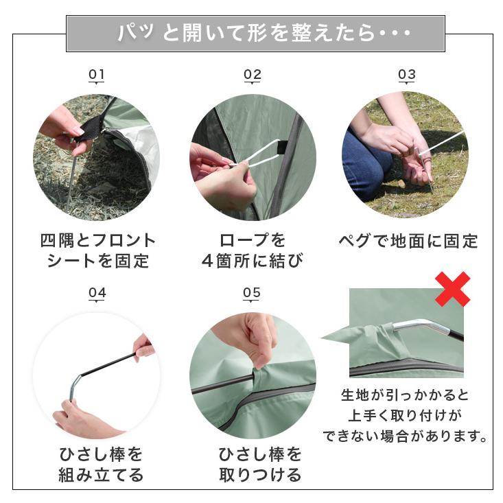 ※風向きにより倒れる場合がございますので、風向きをご確認の上、平らな場所に付属のペグでしっかりと固定して使用してください。