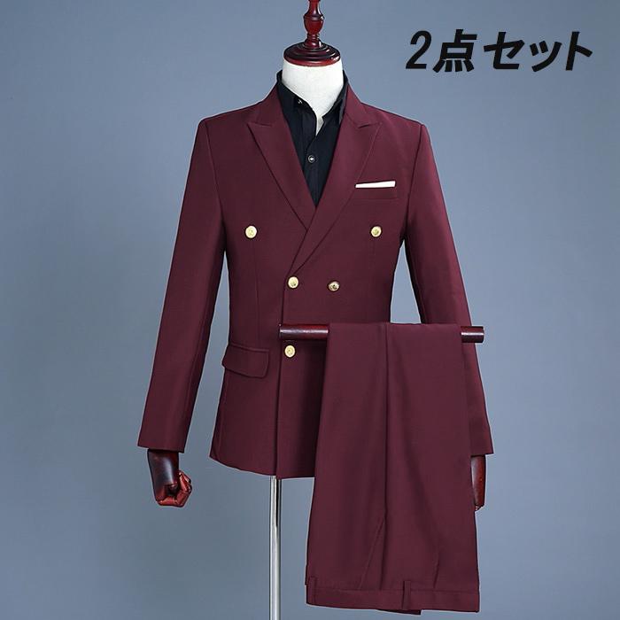長袖 ビジネススーツ ダブルブレスト リクルート ジャケット スーツ フォーマル スーツ 男性用 卒業式スーツ 面接 入学式 花婿スーツ メンズスリムスーツ 2点セット 大きいサイズ ワインレッドdi149f3f3x0