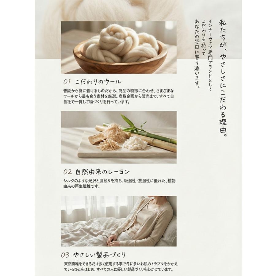 ・天然ウールとレーヨン素材を使用し滑らかな肌触りと高い保温力で足もとからじんわりと体全体を温めます。