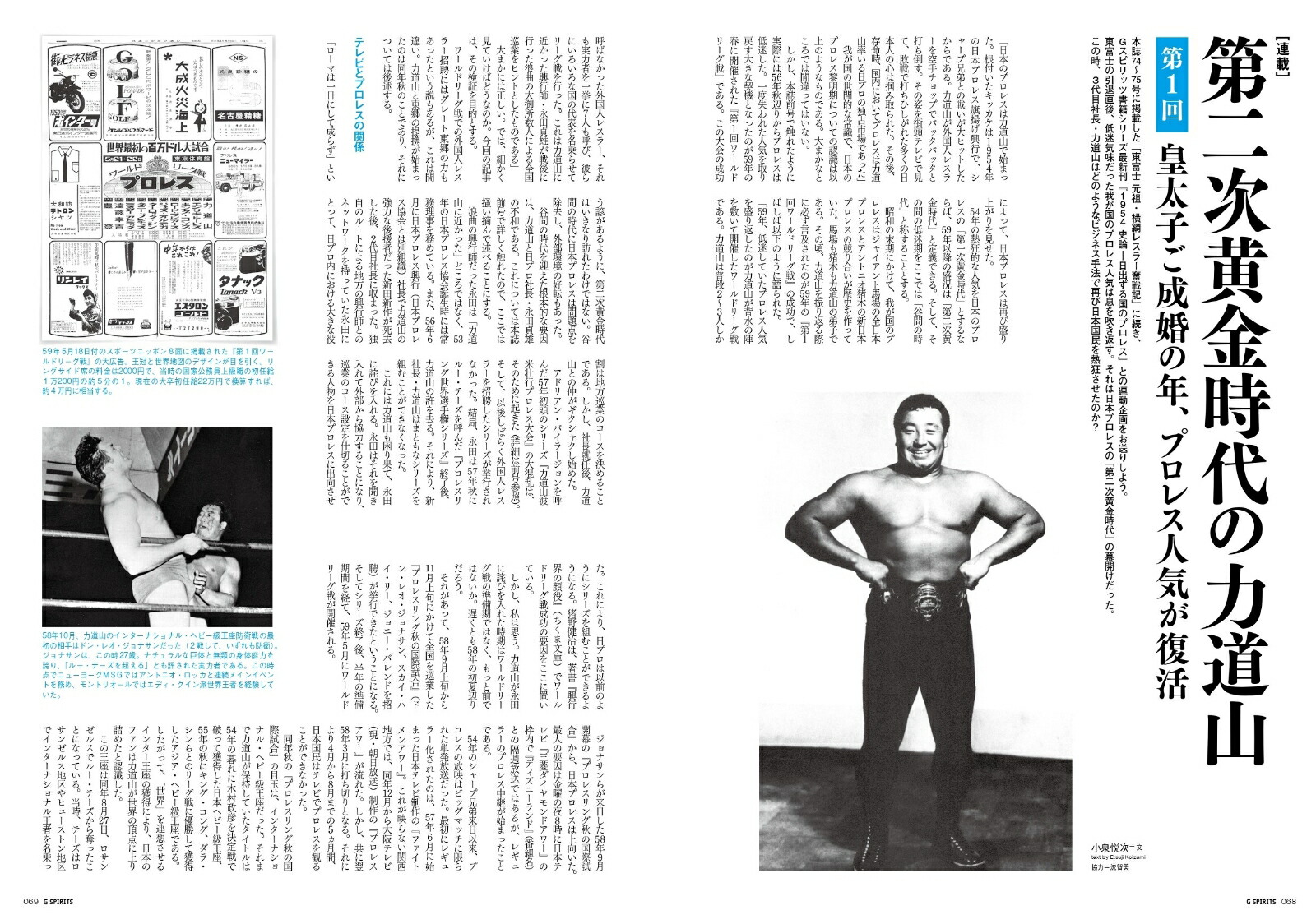 “王道の番人”渕正信が兄貴分・鶴田の強さの秘密を解き明かす鶴田と“五輪コンビ”を組んでいた谷津嘉章があの時代を振り返る川田利明と和田京平レフェリーが最強レスラー・鶴田の素顔を述懐計21ページのボリュームで“小さな巨人”グラン浜田の追悼企画を掲載今年4月に他界された“過激な仕掛け人”新間寿氏の思い出と功績を回想[没25年特集]ジャンボ鶴田 〜“若大将”が“怪物”になるまで〜[証言]渕正信谷津嘉章若林健治(元『全日本プロレス中継』実況アナウンサー)[対談]川田利明×和田京平[新間寿氏ー追悼座談会]“過激な仕掛け人”を偲ぶ【前編】清水勉×小林和朋×小佐野景浩[回想]追悼ーグラン浜田新間寿恒【前編】ザ・グレート・サスケ【前編】[連載]第二次黄金時代の力道山第1回 皇太子ご成婚の年、プロレス人気が復活[インタビュー]立野記代「全女のプロレス」とは何か?【後編】[アリーバ・メヒコ]フエルサ・ゲレーラ善を知らない“暴力戦士”は世渡り上手の謀略家【後編】71歳の害虫が遂に引退を決意[原悦生の格闘写真美術館]第76回「アイコン」更新日:2025年06月13日