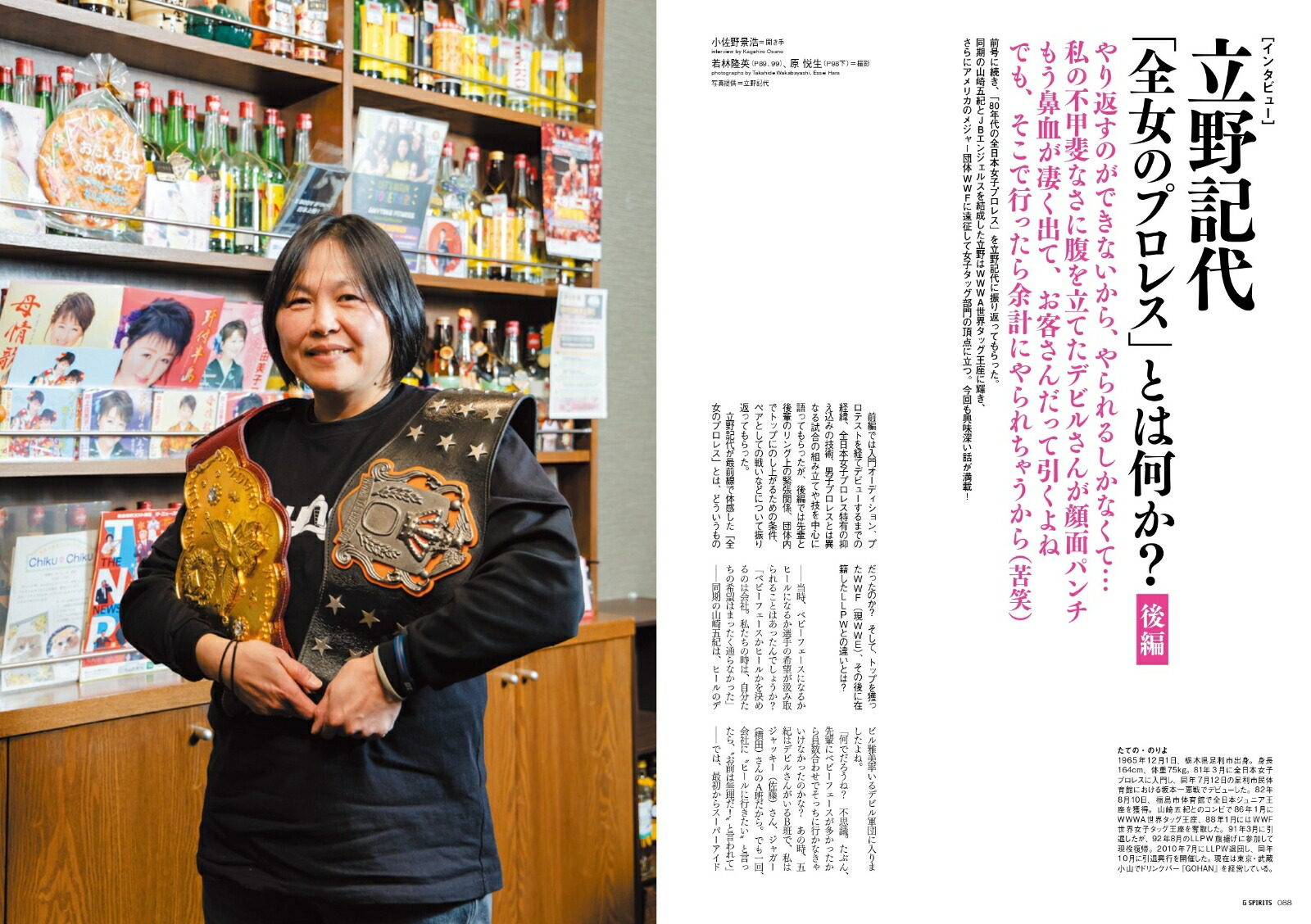 [没25年特集]ジャンボ鶴田 〜“若大将”が“怪物”になるまで〜[証言]渕正信谷津嘉章若林健治(元『全日本プロレス中継』実況アナウンサー)[対談]川田利明×和田京平[新間寿氏ー追悼座談会]“過激な仕掛け人”を偲ぶ【前編】清水勉×小林和朋×小佐野景浩[回想]追悼ーグラン浜田新間寿恒【前編】ザ・グレート・サスケ【前編】[連載]第二次黄金時代の力道山第1回 皇太子ご成婚の年、プロレス人気が復活[インタビュー]立野記代「全女のプロレス」とは何か?【後編】[アリーバ・メヒコ]フエルサ・ゲレーラ善を知らない“暴力戦士”は世渡り上手の謀略家【後編】71歳の害虫が遂に引退を決意[原悦生の格闘写真美術館]第76回「アイコン」