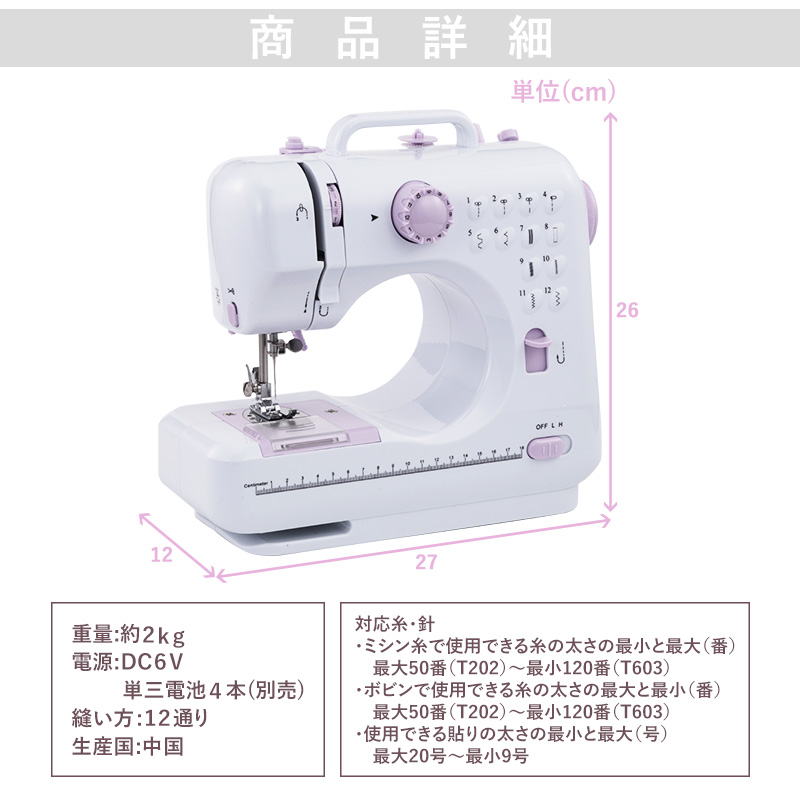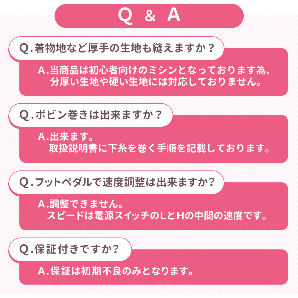 当商品は初心者向けのミシンとなっております為、