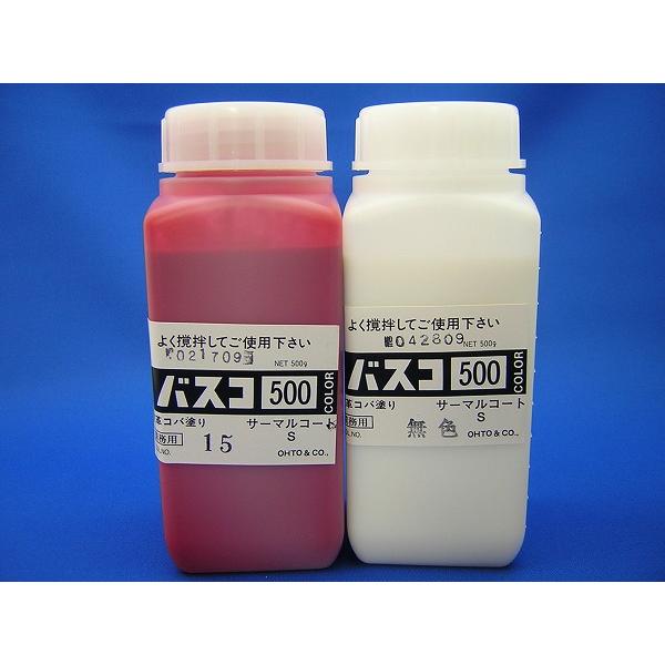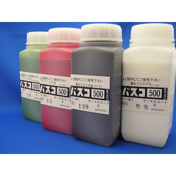 コバ塗り液 バスコ500gは同じ料金で別注色も承ります。コロンブスのサーマルコートSをビニモの色番に調色したものがバスコになります。バスコはビニモの糸の色に合わせているのでコバに合わせやすい特徴があります。