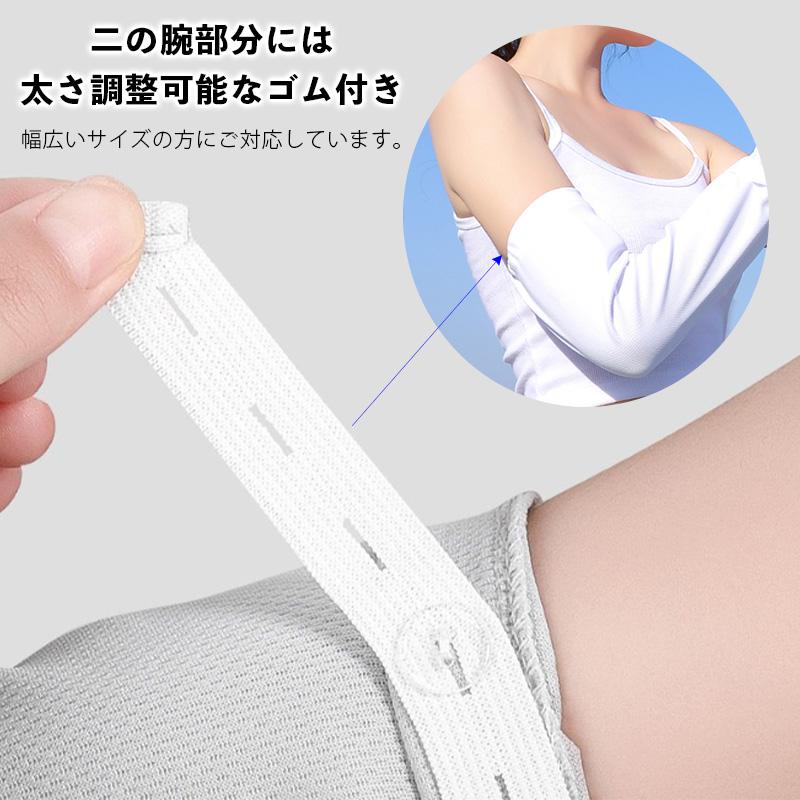 ・二の腕部分は調整可能なゴムベルト付き。ゴムが入っているので、幅広いサイズの方に適用。