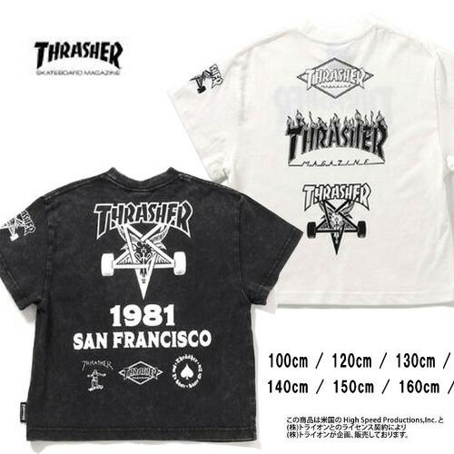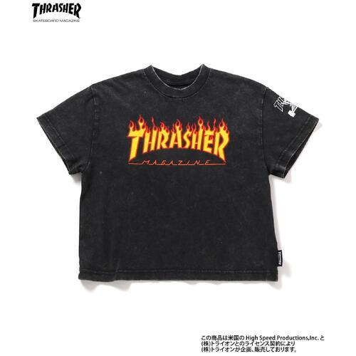 キッズ、ジュニア、レディースサイズ!!インパクトのあるプリントが目を惹くTHRASHERコラボTシャツが登場!大き目のサイズ感でダボっと着るだけでサマになるアイテム。定番のカラー展開で柄ボトムとも相性◎THRASHERならではの世界観を楽しんで‥★素材:コットンサイズ:100〜160cm