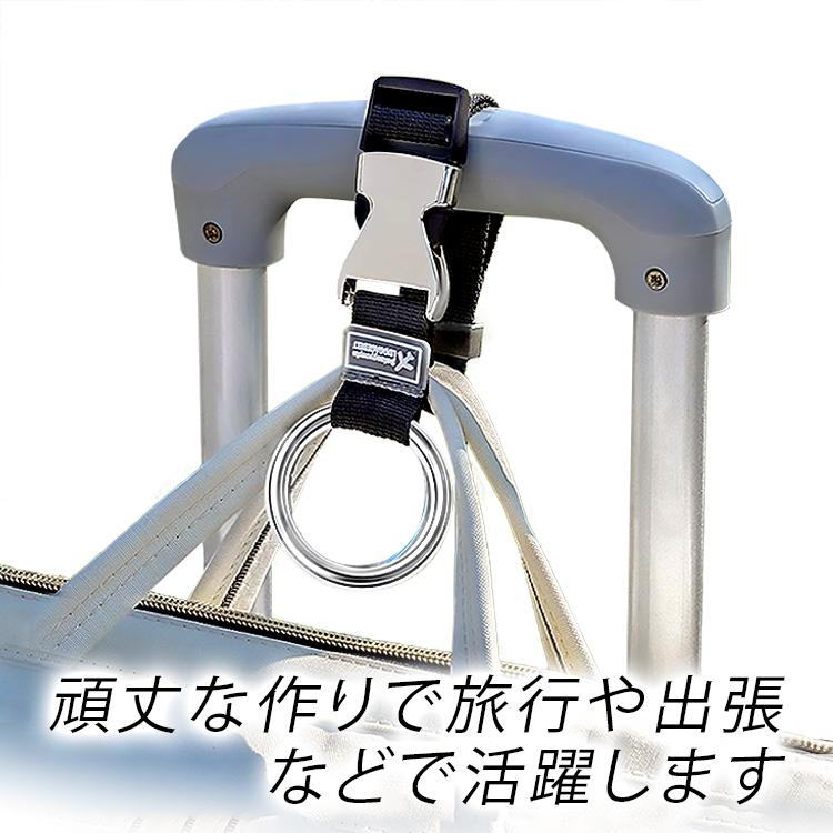 をスーツケースやカバンに掛けられる、両手を解放できる荷物掛けホルダーです。
