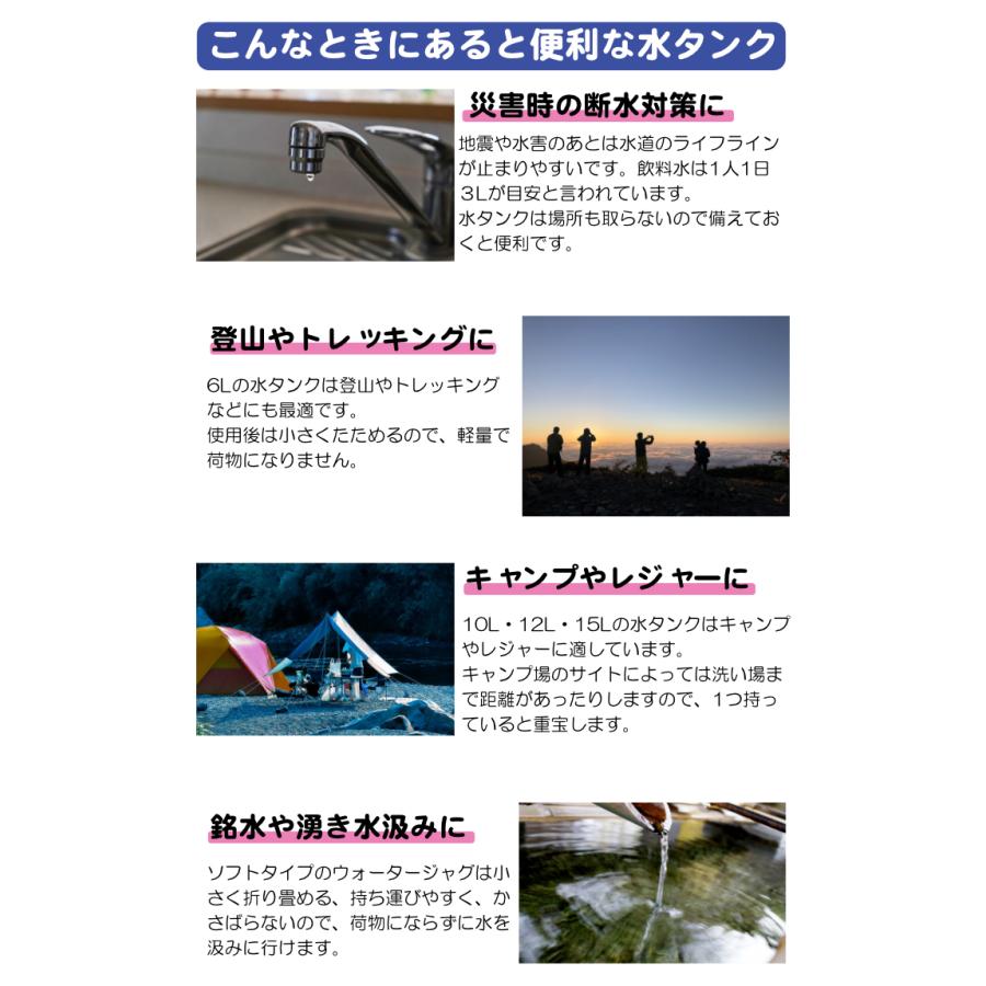 10L・12L・15Lの水タンクはキャンプやレジャーに適しています。