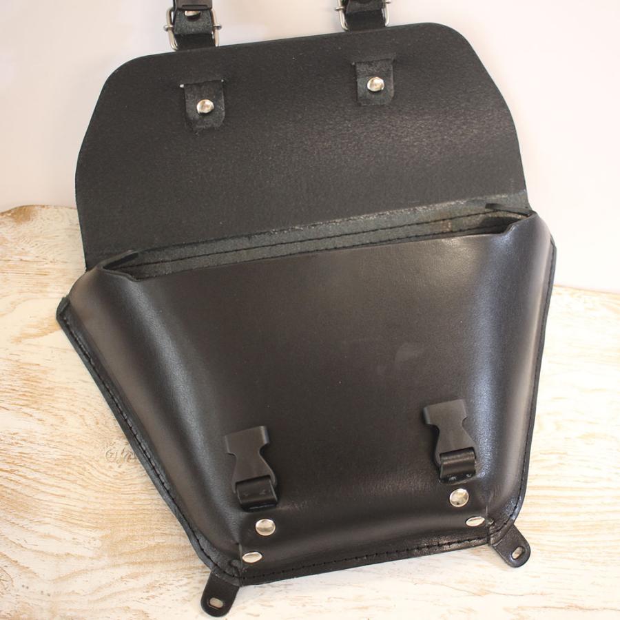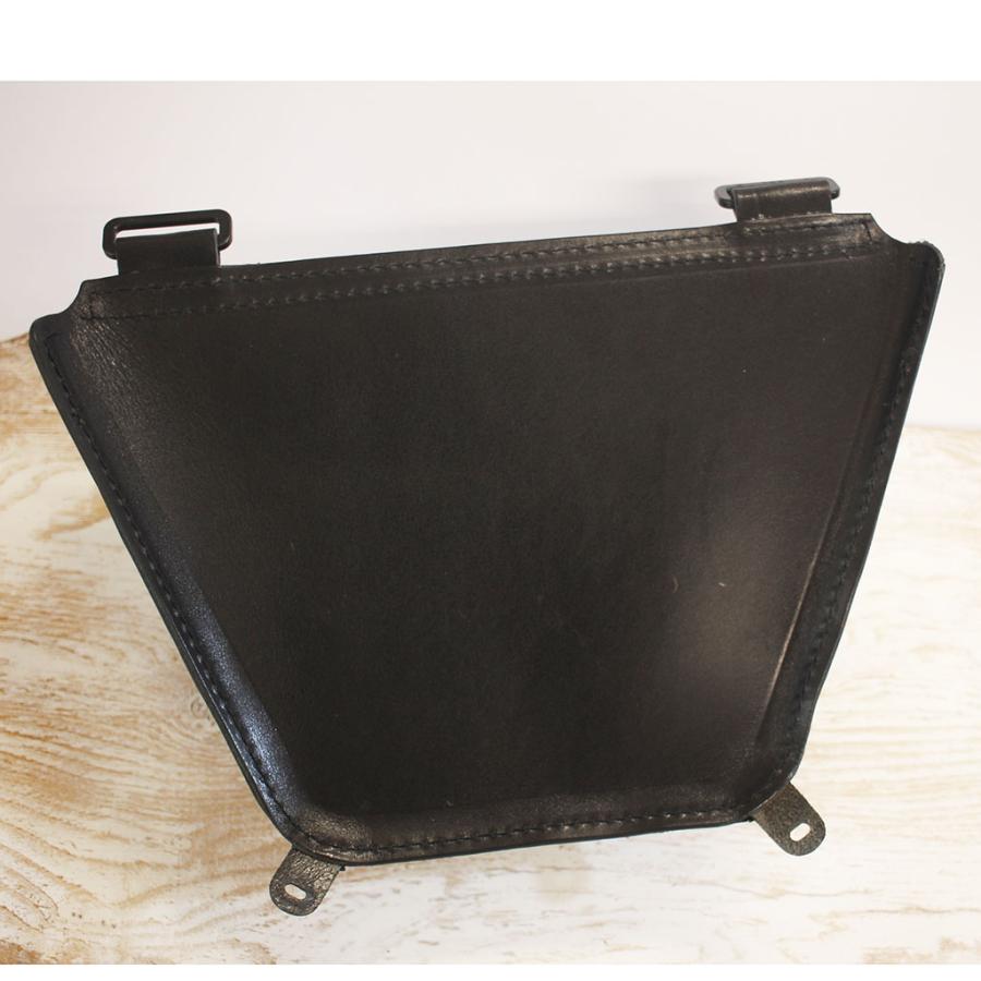 SRの美しいスタイルを損なうことなく収納力をUPすべく、純正の樹脂カバーと同形状のレザーサイドバッグを作製しました。3mm厚の頑丈なサドルレザー製で、皮革用ミシンで縫製しています。