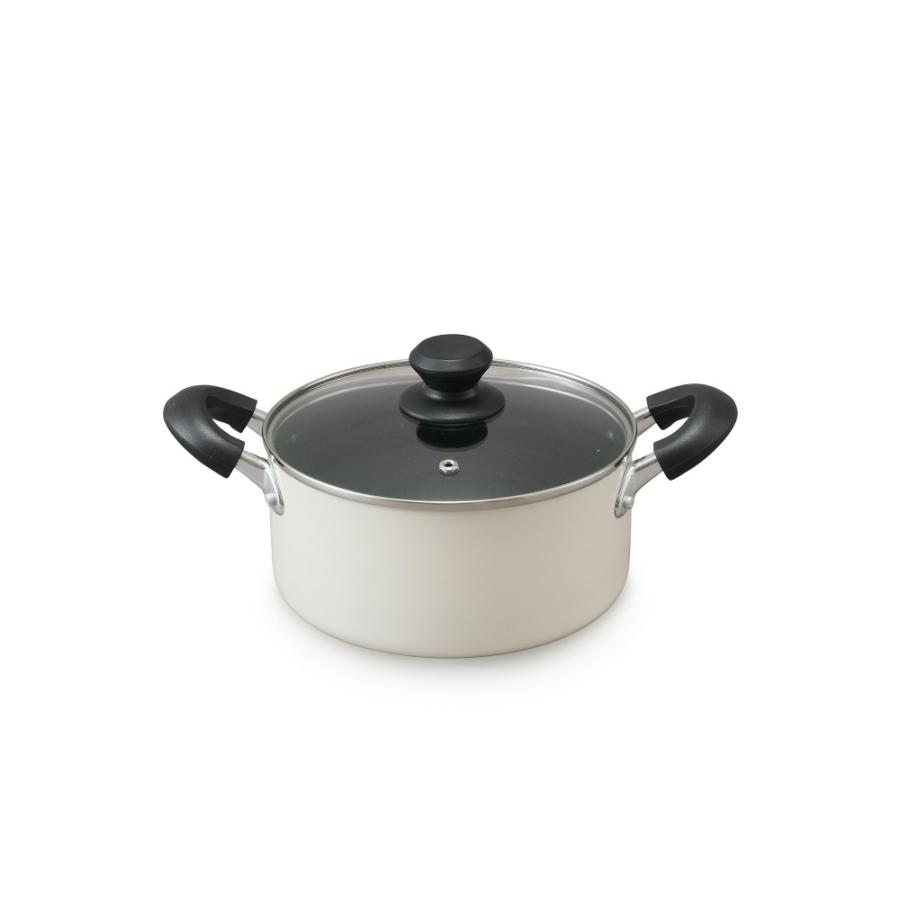 アイリスオーヤマ 両手鍋 20? 鍋 蓋つき ガス火/IH対応 ガラス蓋付き ダイヤモンドコート 長持ち こびりつきにくい お手入れ簡単 ホワイト DIS-P20