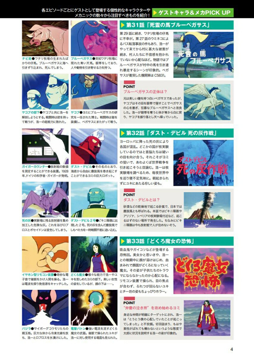 テレビ朝日系列で1973年1月から9月まで毎週月曜日19時〜19時半に放送された全39話を全4巻で収録。日本の漫画界では見られなかった”超能力”を主題にしたエポックメイキングな作品であり、その後も脈々と続く「超能力もの」の礎を築き上げた作品。付録のブックレットではマニア垂涎の当時の貴重な絵コンテや設定資料を掲載。人気の高い“3つのしもべ”ロプロス、ポセイドン、ロデムなどの初公開資料も掲載。