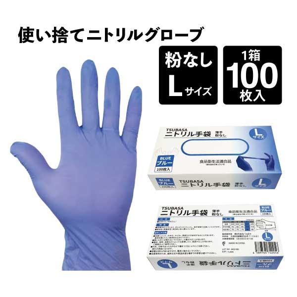 TSUBASA 使い捨て手袋 ニトリルグローブ/Lサイズ 100枚入り優れた弾性、耐油性、穴あきや破れに強く、耐静電性に優れる。ラテックスフリーなので、天然ゴムラテックスにアレルギーの方に最適です。●耐油性・耐突刺性・耐静電性●指先外エンボス付き、滑り防止●スマホ操作も可能●サイズ全長(±5):M/L240mm●手の平の幅:M95mm/L105mm●中指の長さ:M80mm/L85mm材質:合成ゴム(NBRゴム) 100枚入※左右兼用・粉なし・未滅菌タイプ