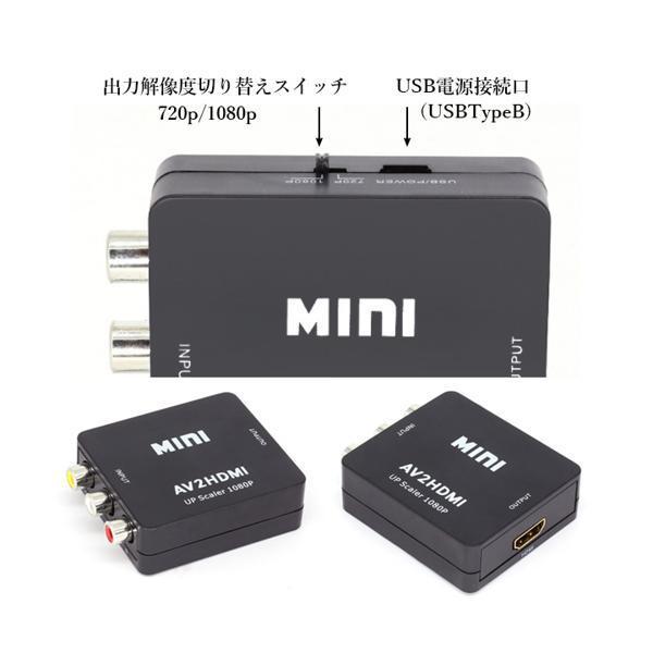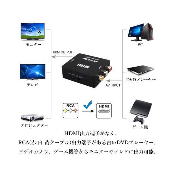 RCA to HDMI 変換コンバーター AV to HDMI 変換器 3色ピン 赤 黄 白 音声転送 アナログ 1080P FullHD