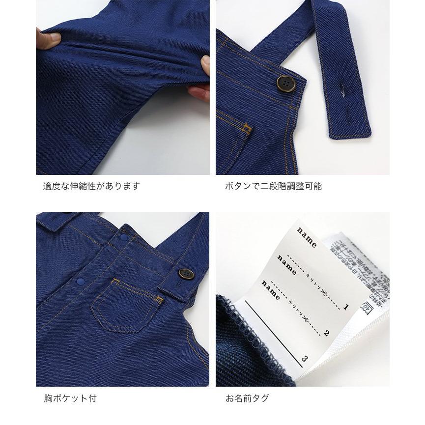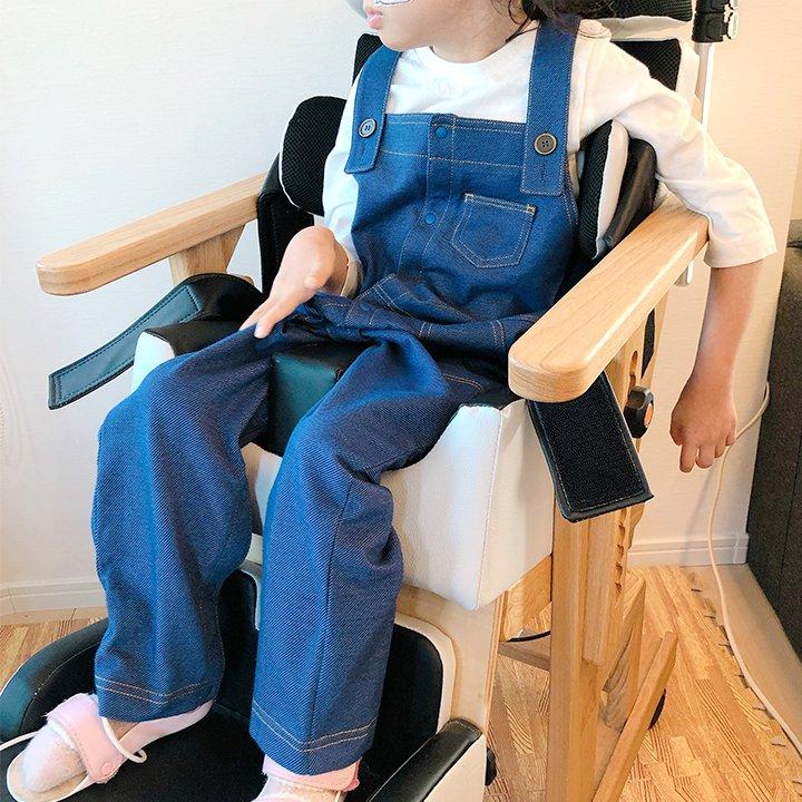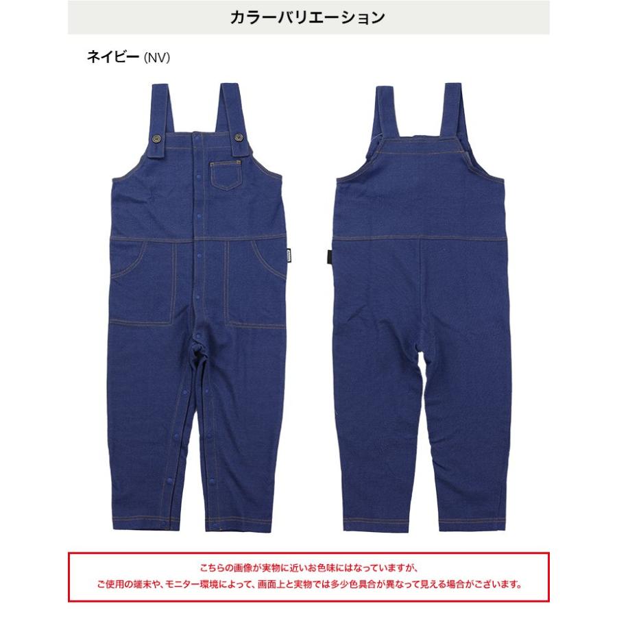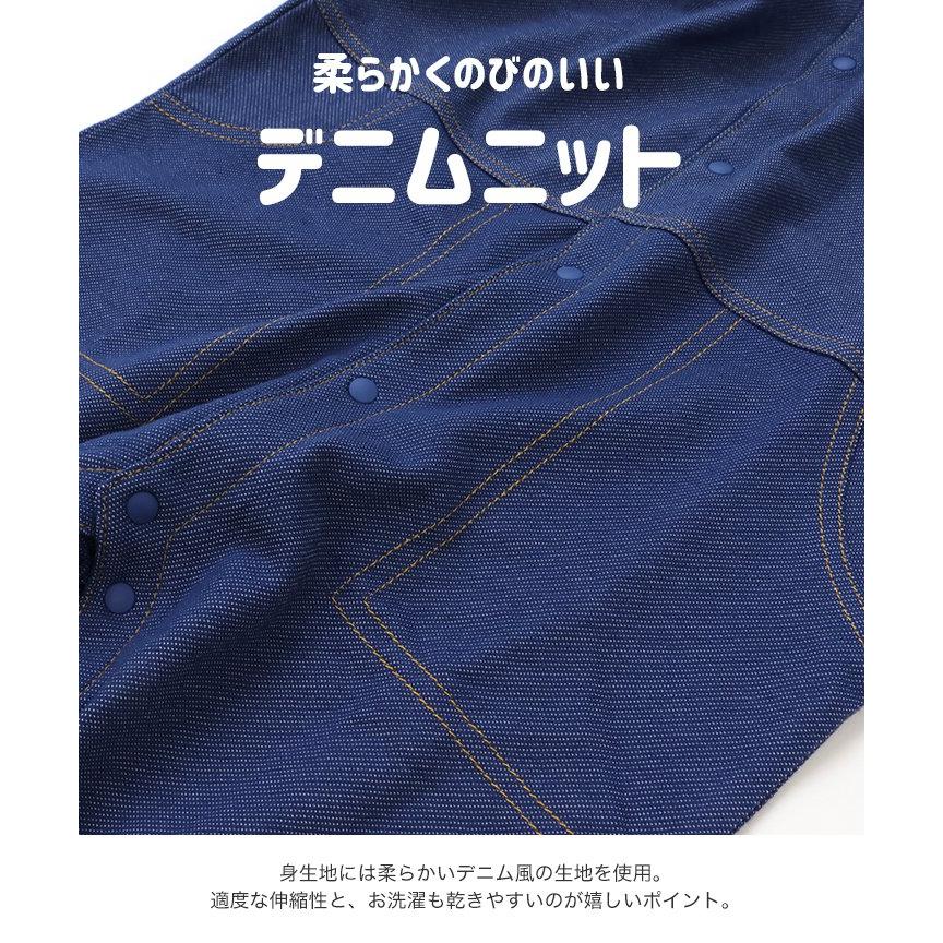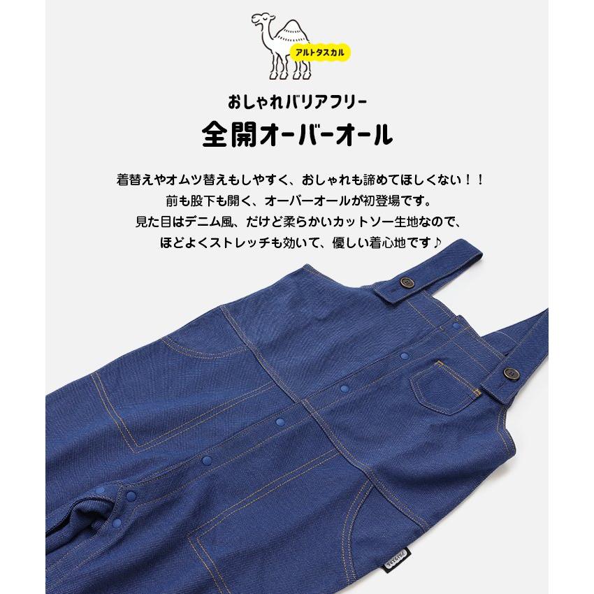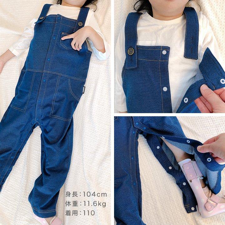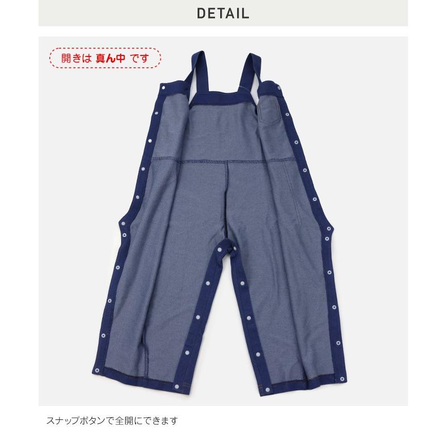スナップボタンで全開になるオーバーオール。