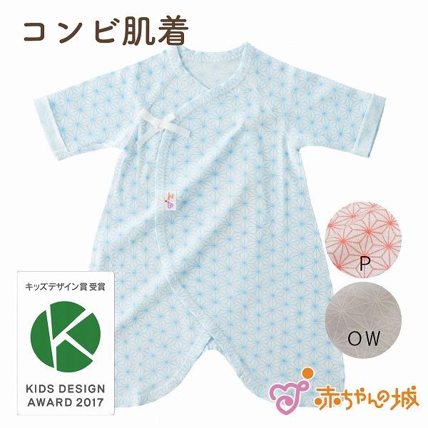 【キッズデザイン賞受賞】赤ちゃん 肌着 コンビ肌着 日本製 春夏秋冬 出産準備 出産祝い 新生児 ベビー肌着 麻の葉 総柄 綿100% フライス 男の子 女の子 ピンク サックス オフホワイト