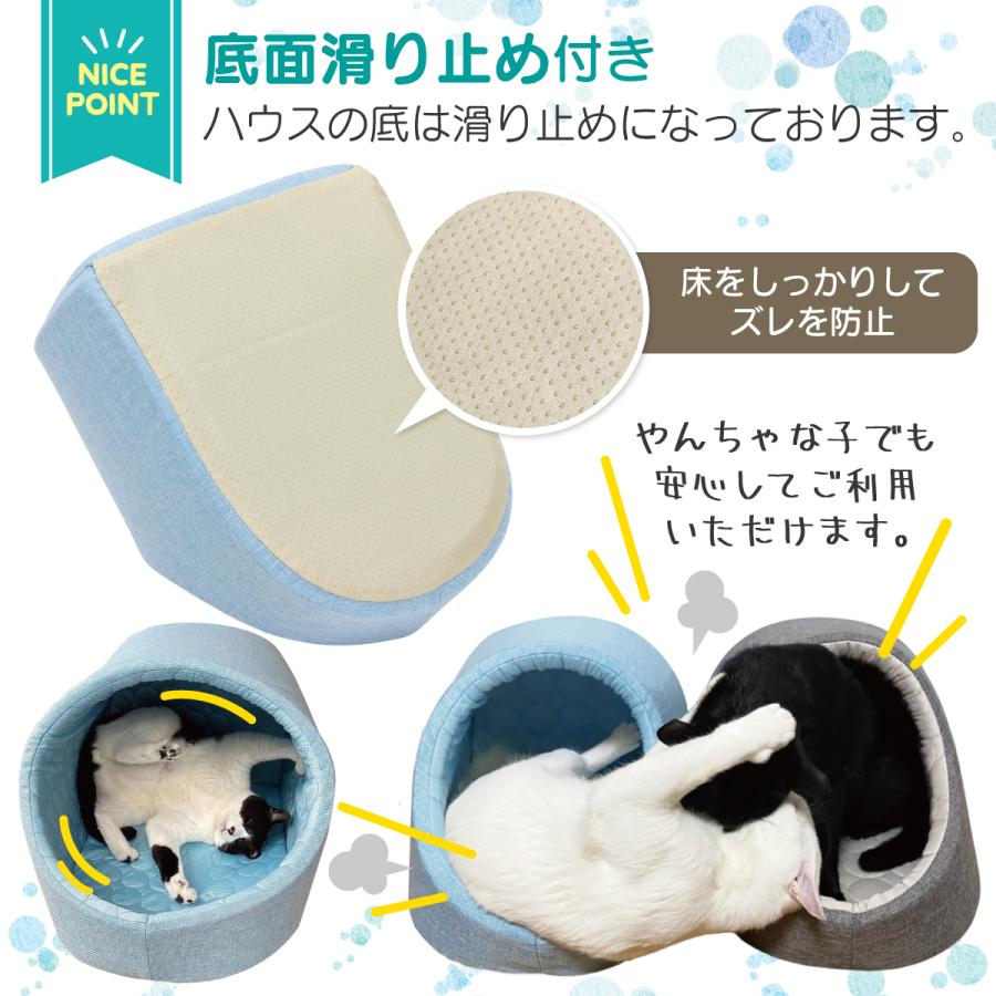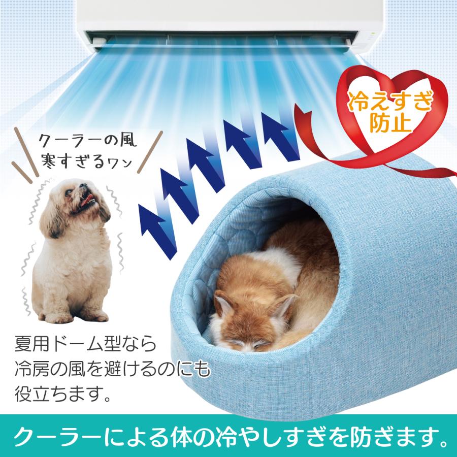 【暑い日も快適!ドーム型のひんやりペットベッド】夏バテ気味のネコちゃんワンちゃんに朗報!接触冷感生地採用の春夏にオススメのドーム型ペットベッドの登場です。冷房による体の冷え過ぎも防ぎます。