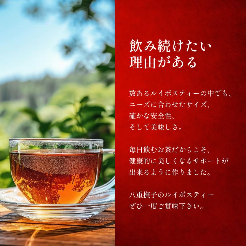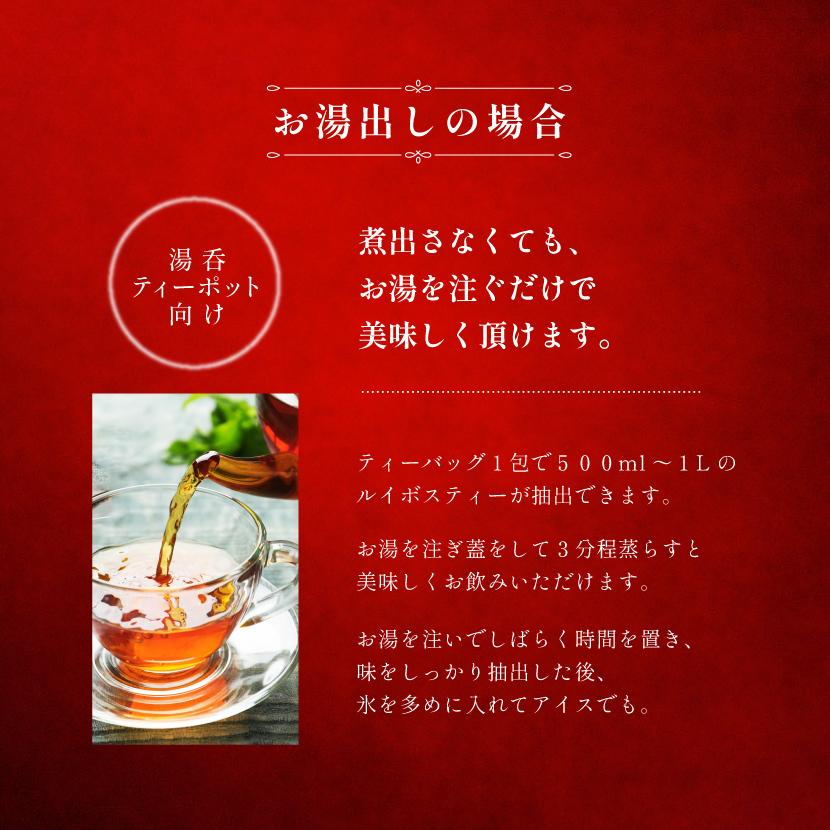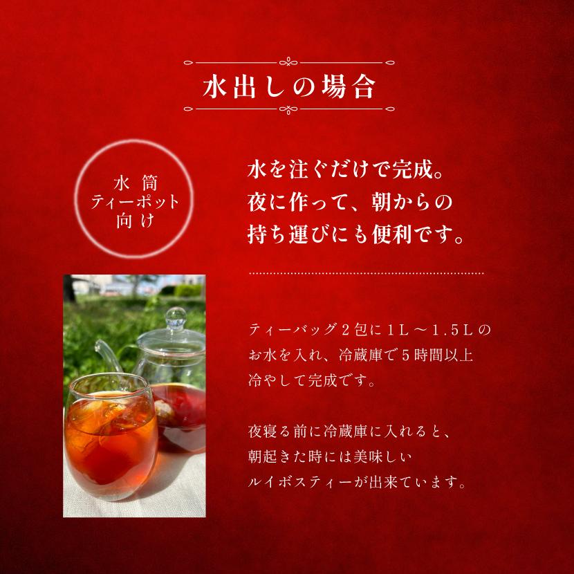 無漂泊のティーバッグを使用しており体にも優しい!暑い夏に水出し、寒い冬にホットで年中楽しめるルイボスティーです。